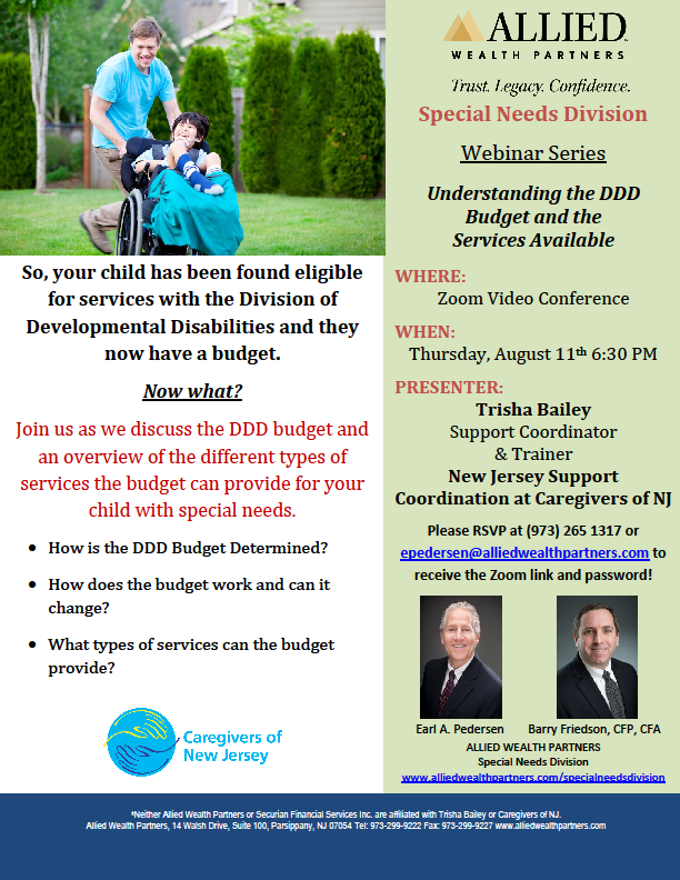 They will discuss the DDD budget and an overview of the different types of services the budget can provide for your child with special needs.
